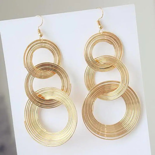 Exaggerated Long Multilayer Circle Drop Earrings For Women Jewelry 2024 Trending Gold Color Earings Vintage Big Circle Earrings