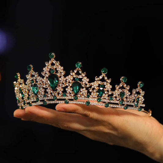 Baroque Green Wedding Headband Crystal Bridal Crown Tiaras Party Hair Jewelry Accessories Women Rhinestone Headwear Queen Diadem