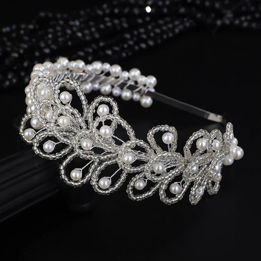 Luxury Pearl Headband Tiara For Women Bride Party Bridal Wedding Hair Accessories Jewelry Vine Headband Tiara Gift