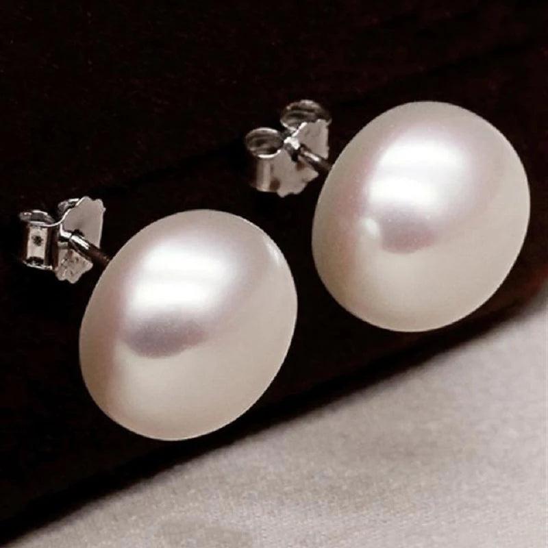 12-13mm Pearl Stud Earrings Natural Freshwater Pearl Real S925 Sterling Silver Earrings Jewelry For Women Fashion Gift