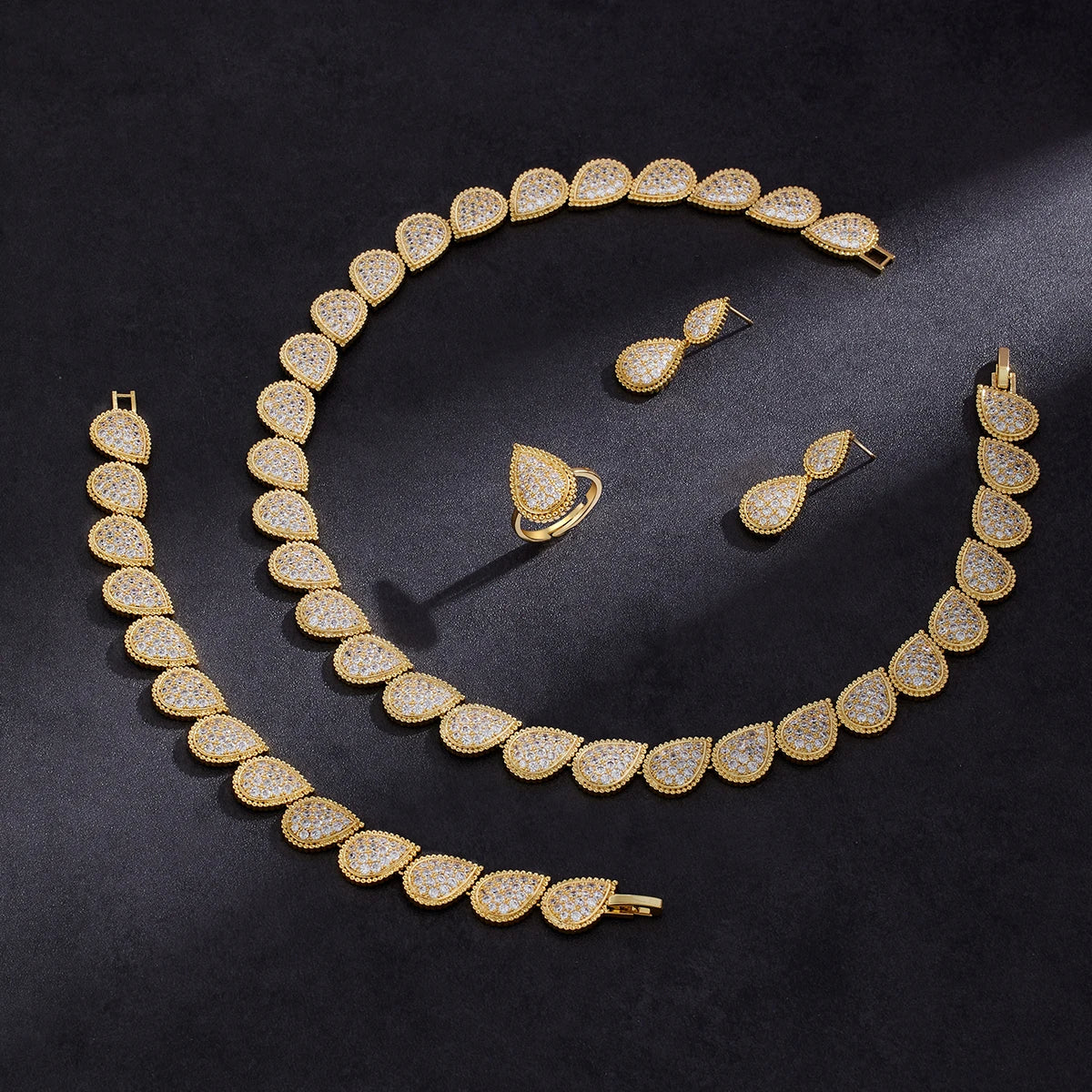 2024 Hot selling 4 pieces of Bridal Zirconia Full Set Women's Party Jewelry, Dubai Nigeria CZ Crystal Wedding Necklace Set