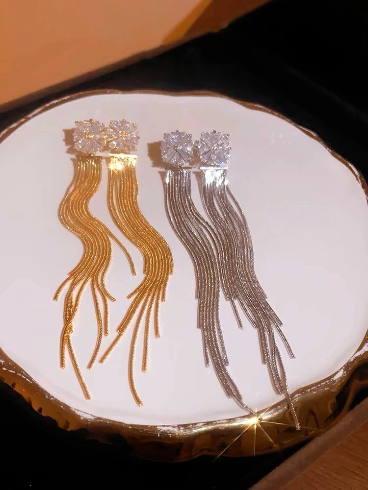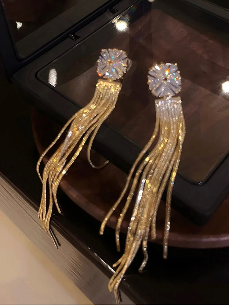 2024 New Luxury Zirconia Crystal Long Tassel Drop Earrings For Women Gold Color Elegant Bridal Earrings Party Jewelry Oorbellen