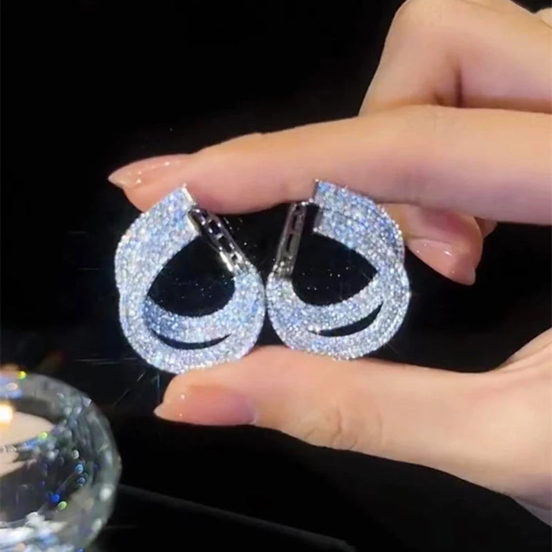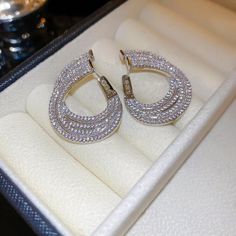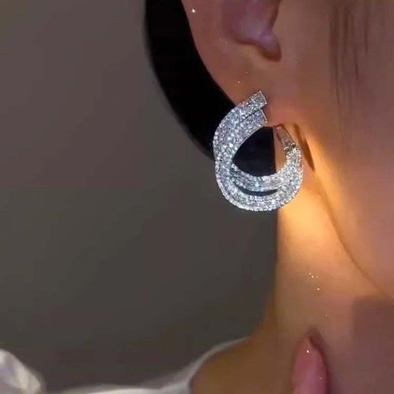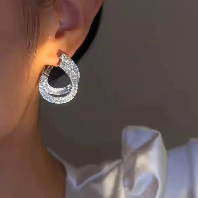 2024 Unique Double Layer Zircon C-shaped Earrings for Women New Fashion Personality Cool Girls Party Unusual Accessories Jewelry