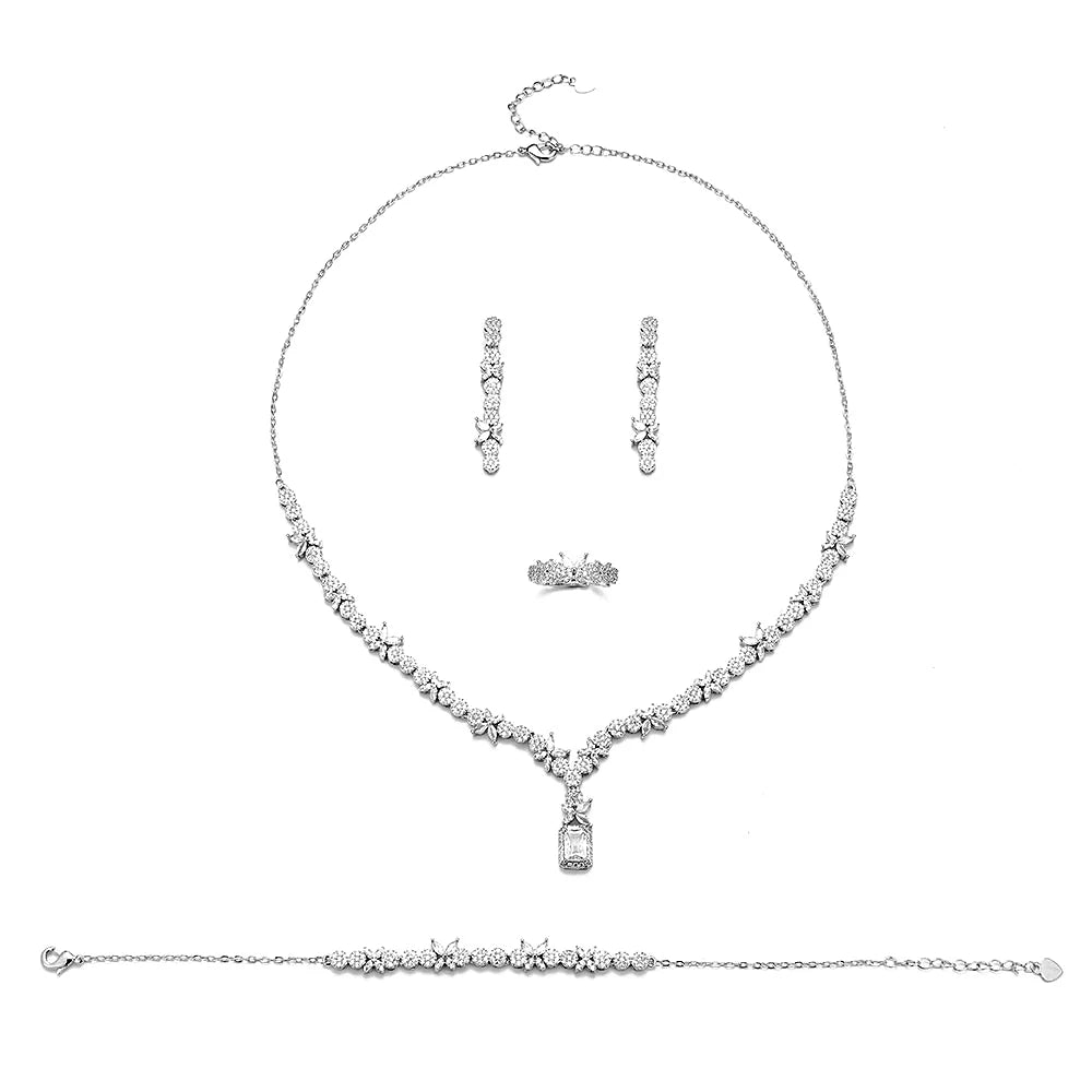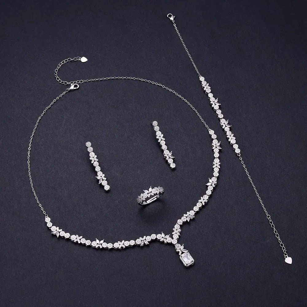 4 Pcs Super Luxury Cubic Zirconia Bridal Wedding Party Costume Nigerian Dubai Jewelry Set for Brides Accessories