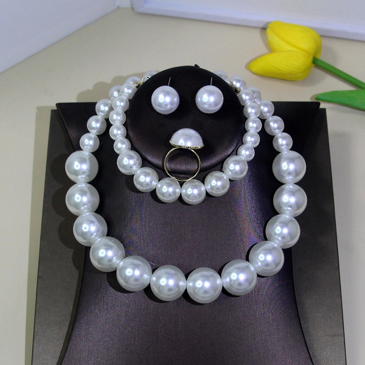 5 Women's Vintage Light Luxury French 5 Piece Imitation Pearl Jewelry Fashion Wedding Earring Bracelet Necklace Ring Set
