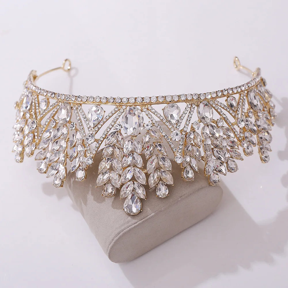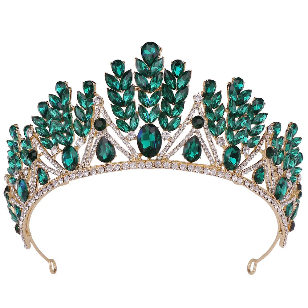 Baroque Green Wedding Headband Crystal Bridal Crown Tiaras Party Hair Jewelry Accessories Women Rhinestone Headwear Queen Diadem