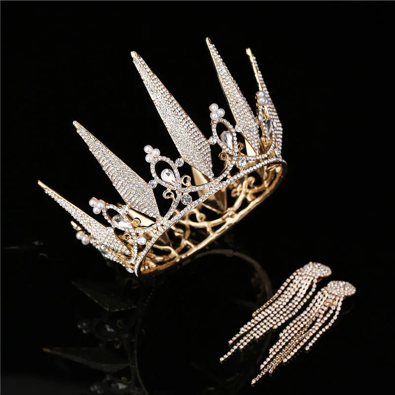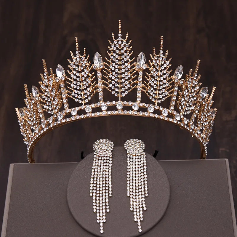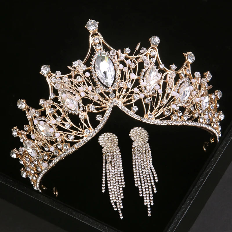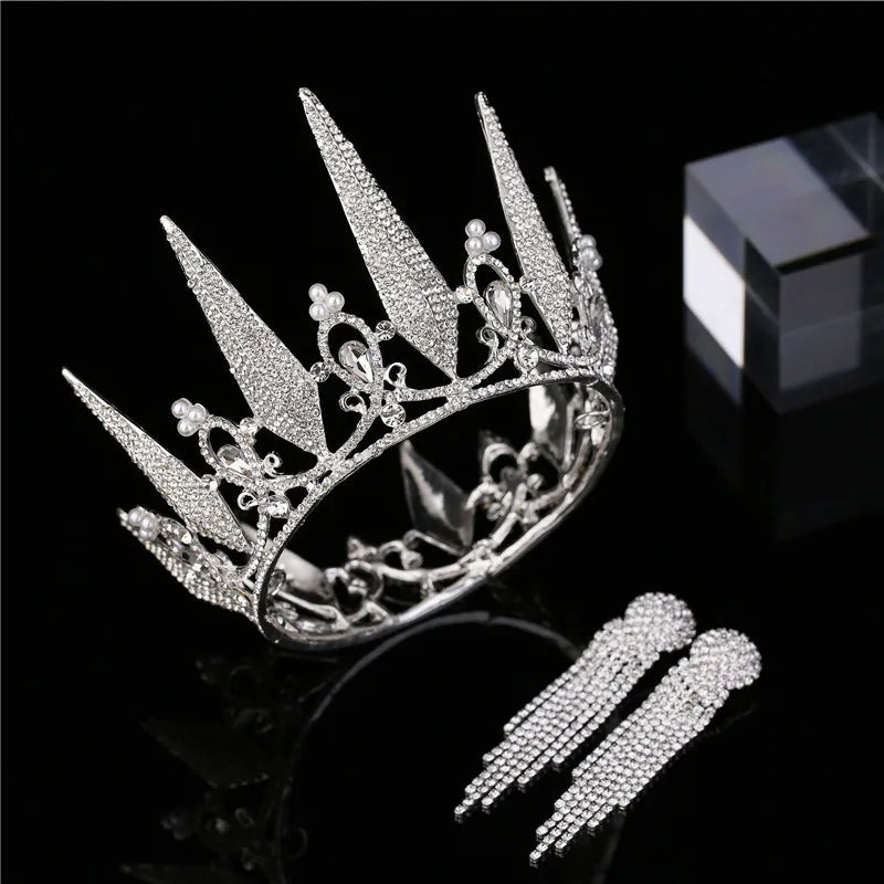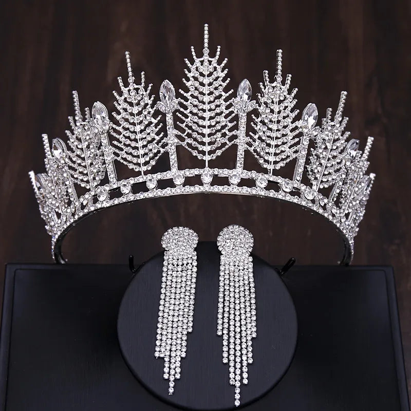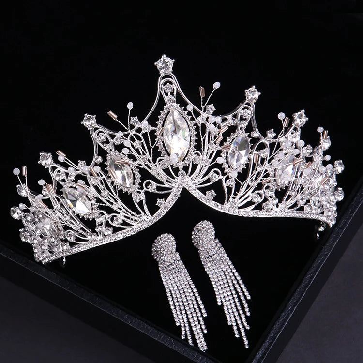 Baroque Luxury Silver Color Crystal Bridal Tiaras Crown With Earrings Rhinestone Pageant Diadem Wedding Hair Accessories Bijoux