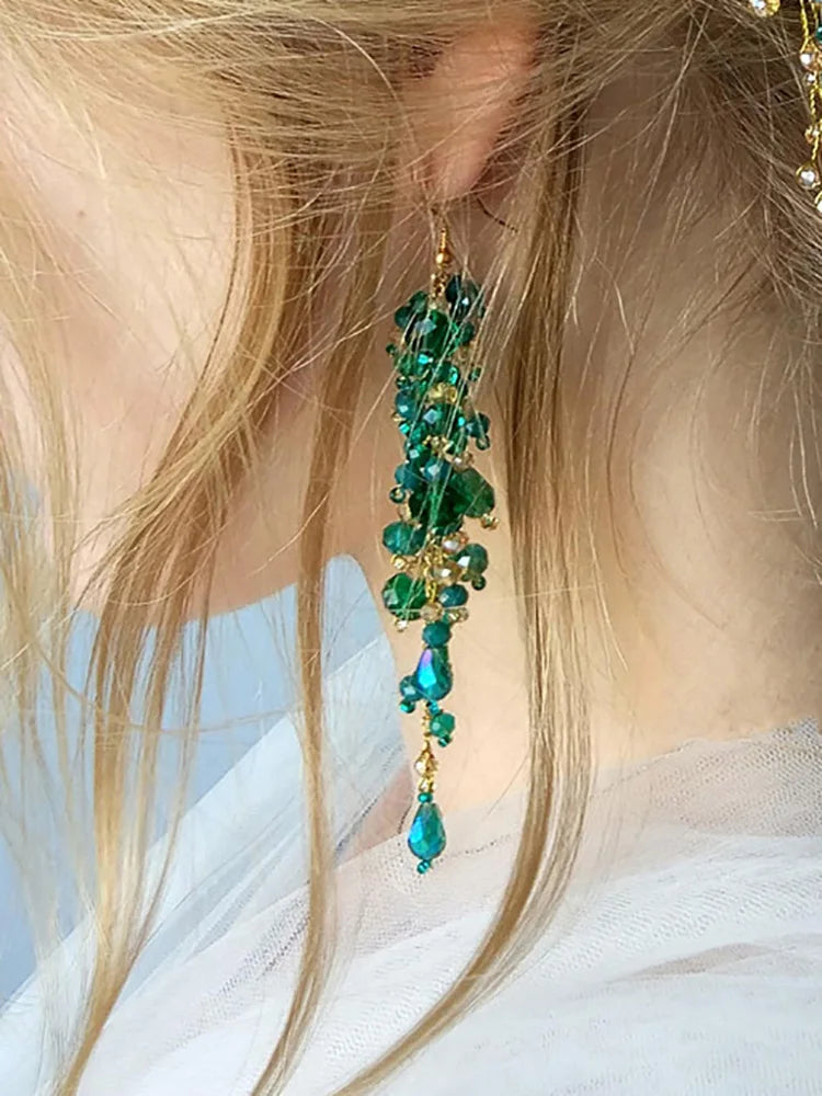 Embrace bohemian elegance with the Fxmimior Boho Bridal Headband, a high-quality handmade accessory crafted to add a unique touch to any bridal look. Featuring intricate imitation crystals, lace, and delicate beads, this green headband beautifully complements a natural, free-spirited style. Perfect for weddings, engagements, anniversaries, or special celebrations, it can be worn as both a headband and statement earrings set, adding versatility to your look. Ideal for brides seeking a floral-inspired piece, this headband radiates a chic and effortless charm, making it a memorable choice for any occasion.