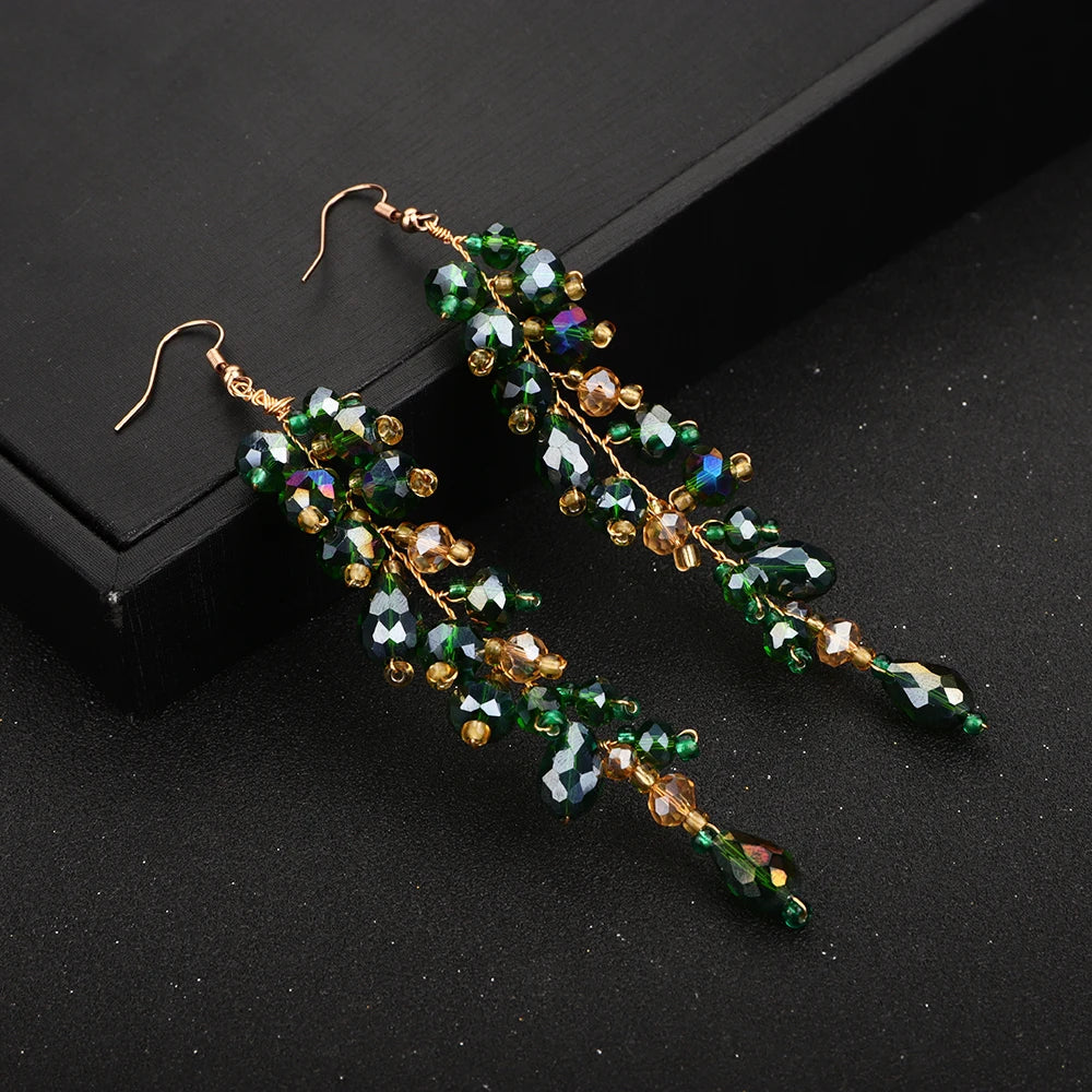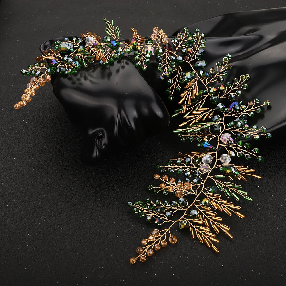 Bohe Green Vine Bridal Headband Crystal Headdress Bridal Hair Ornaments Wedding Hair Accessories Bride Headband For Women