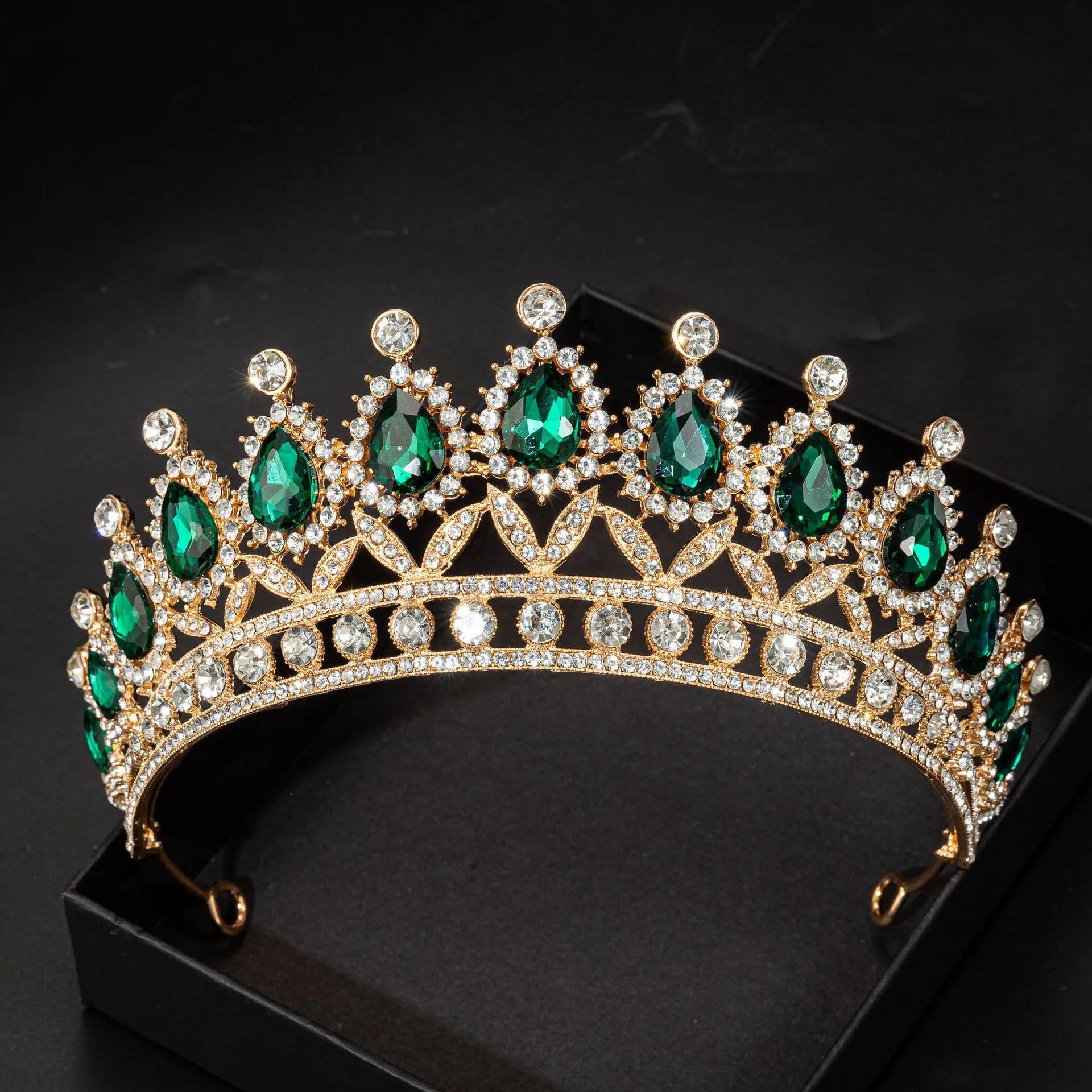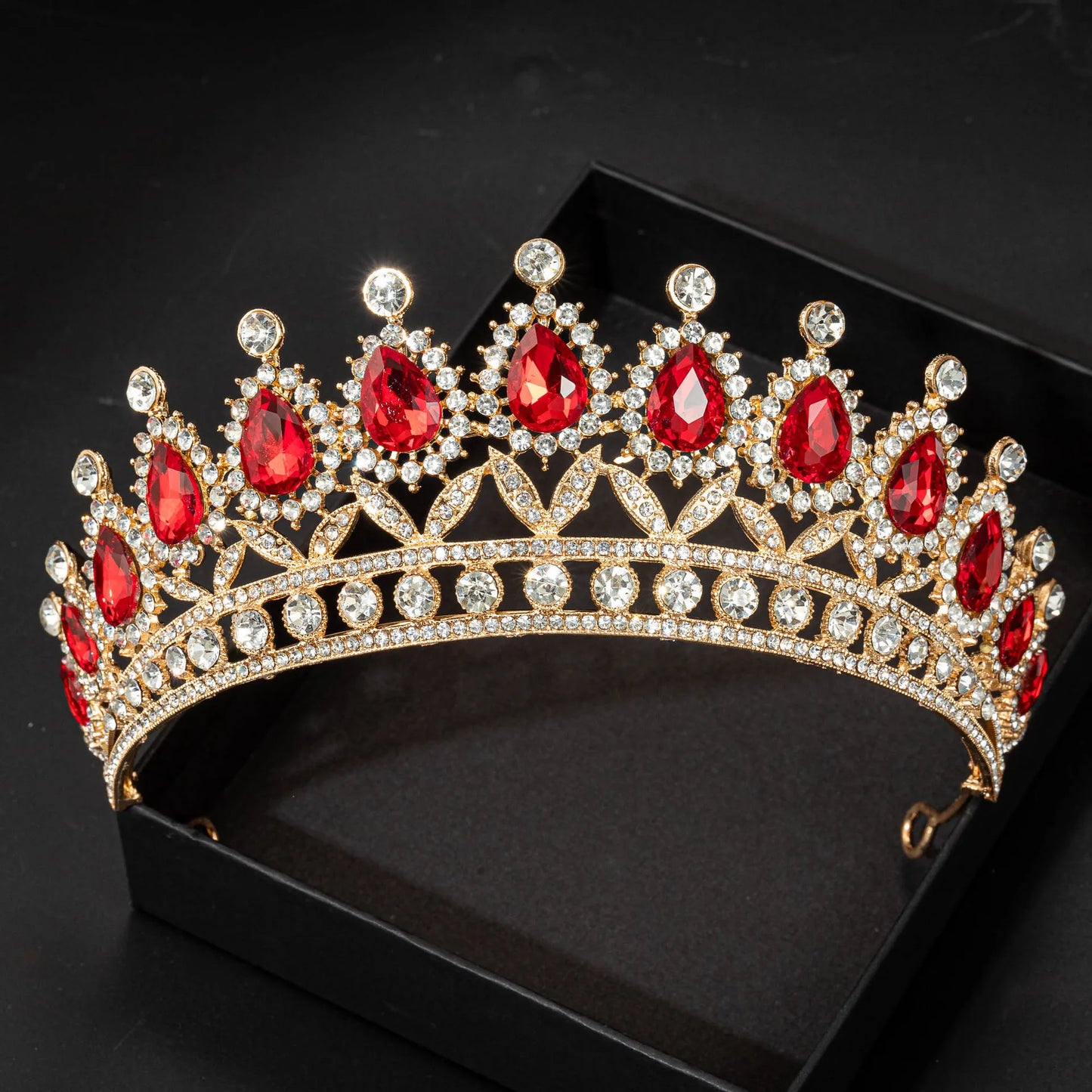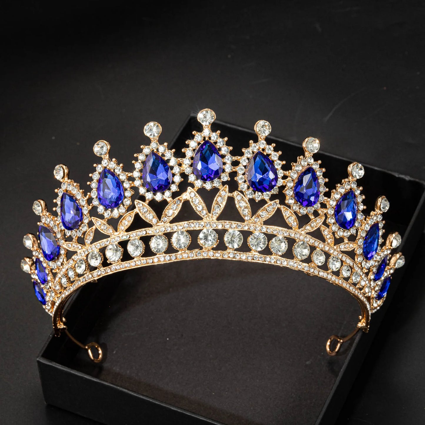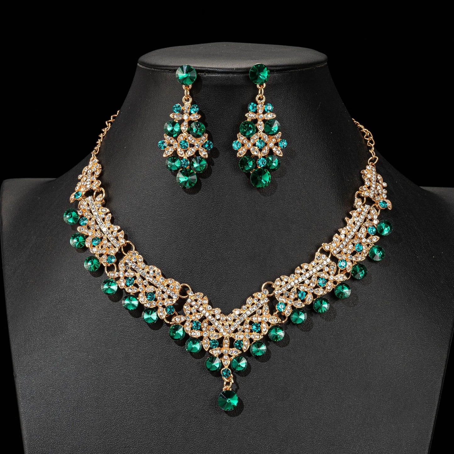 Crystal Rhinestone Bridal Tiaras Crown Women Queen Princess Purple Pink Red Blue Green Necklace Sets Fashion Jewelry Set Diadems
