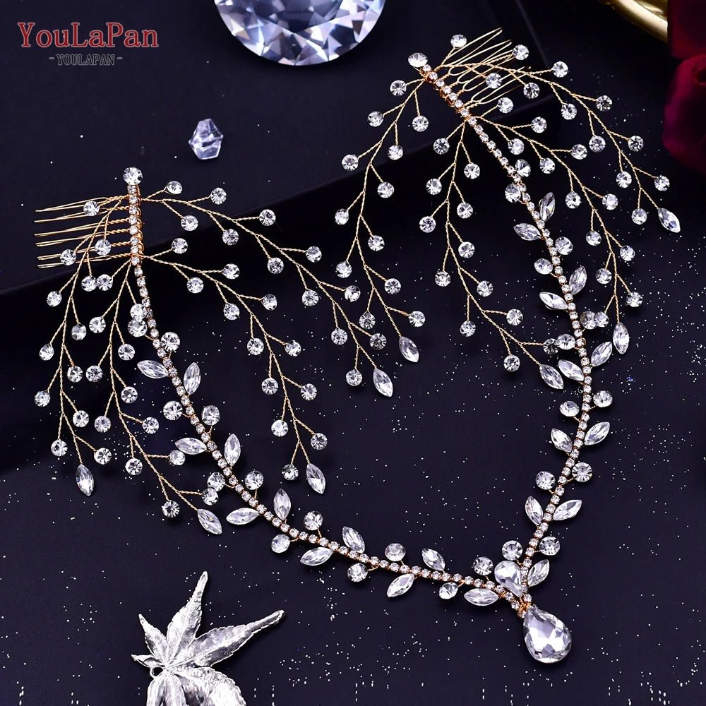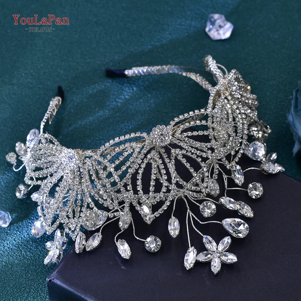 YouLaPan Bling Rhinestone Headband Wedding Bridesmaid Headwear Women Fashion Hair Accessories Handmade Bride Tiara
