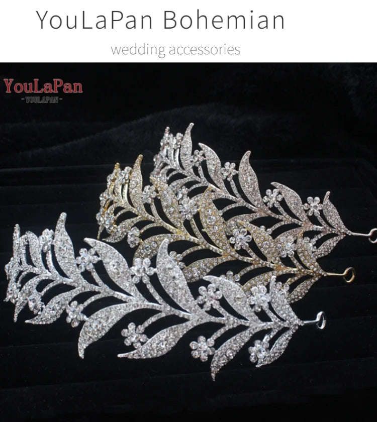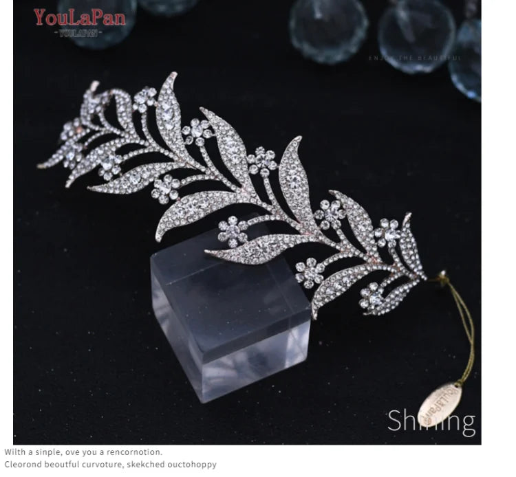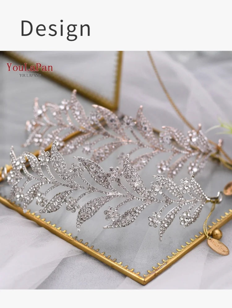 Add a touch of romance to your special day with the YouLaPan Rhinestone Bridal Crown. This exquisite handmade headpiece, crafted from high-quality rhinestones and durable zinc alloy, showcases a delicate plant-inspired design. Available in silver, golden, or rose gold, the crown’s charming 16cm diameter and 5.6cm height make it a versatile piece that complements any bridal or party look. Lightweight yet luxurious, this crown is ideal for brides, bridesmaids, and formal occasions, bringing a graceful sparkle that enhances your elegance and charm.